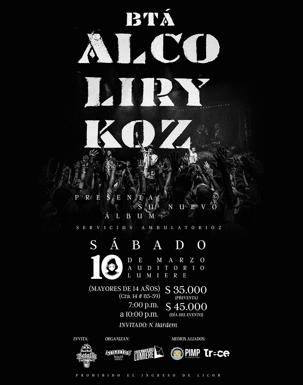 Este 9 y 10 de marzo de 2018, el Auditorio Lumiere, en Bogotá, se llenará de hip hop con AlcolirykoZ.
