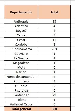 Entre las regiones seleccionadas se encuentra Cundinamarca con 203 proyectos presentados, Santander con 21 historias y Antioquia con 18.