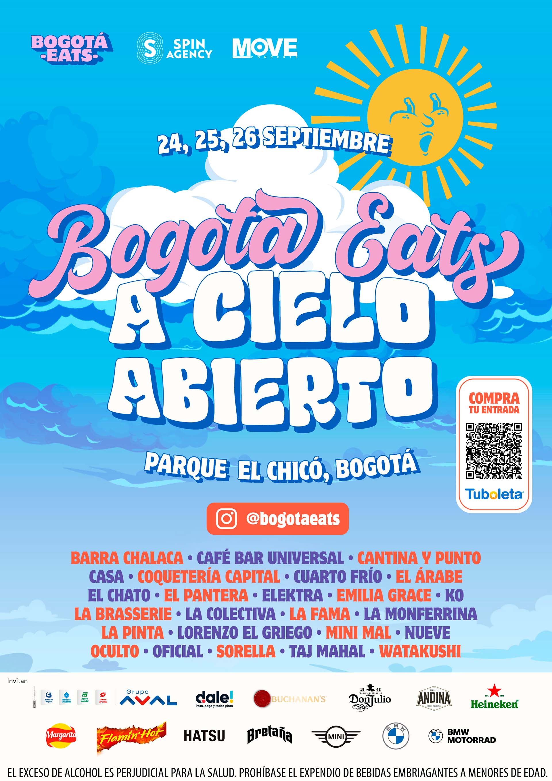 BogotaEats presenta a Cielo Abierto, una experiencia gastronómica junto a 25 restaurantes de Bogotá. La cita se dará el 24, 25 y 26 de septiembre en el Parque El Chicó de Bogotá, y traerán a este espacio sus platos más emblemáticos en porciones más pequeñas.