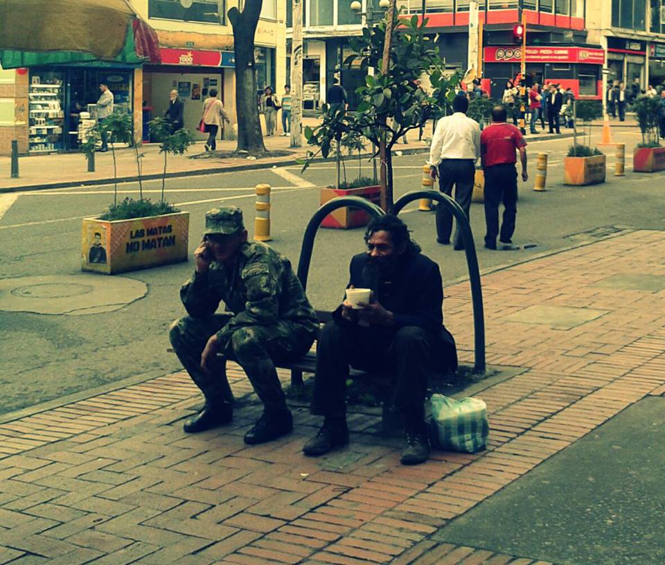 Pero cuando alguien que no conozco se acerca mucho, suena una voz ancestral en mi cabeza: ‘No des papaya’. Aprieto el celular. Camino más pesado como si tuviera zapatos de acero. Me giro con todo el cuerpo. Miro a los ojos. Él o ella se quedan con la mano colgando. Sonríen. Se apartan. Yo quedo con la sangre haciéndome cosquillitas en las manos. Adrenalina. ¿Tengo todo?. Me reviso. Se llevaron el mecato para el viaje en el bus. Rateros.