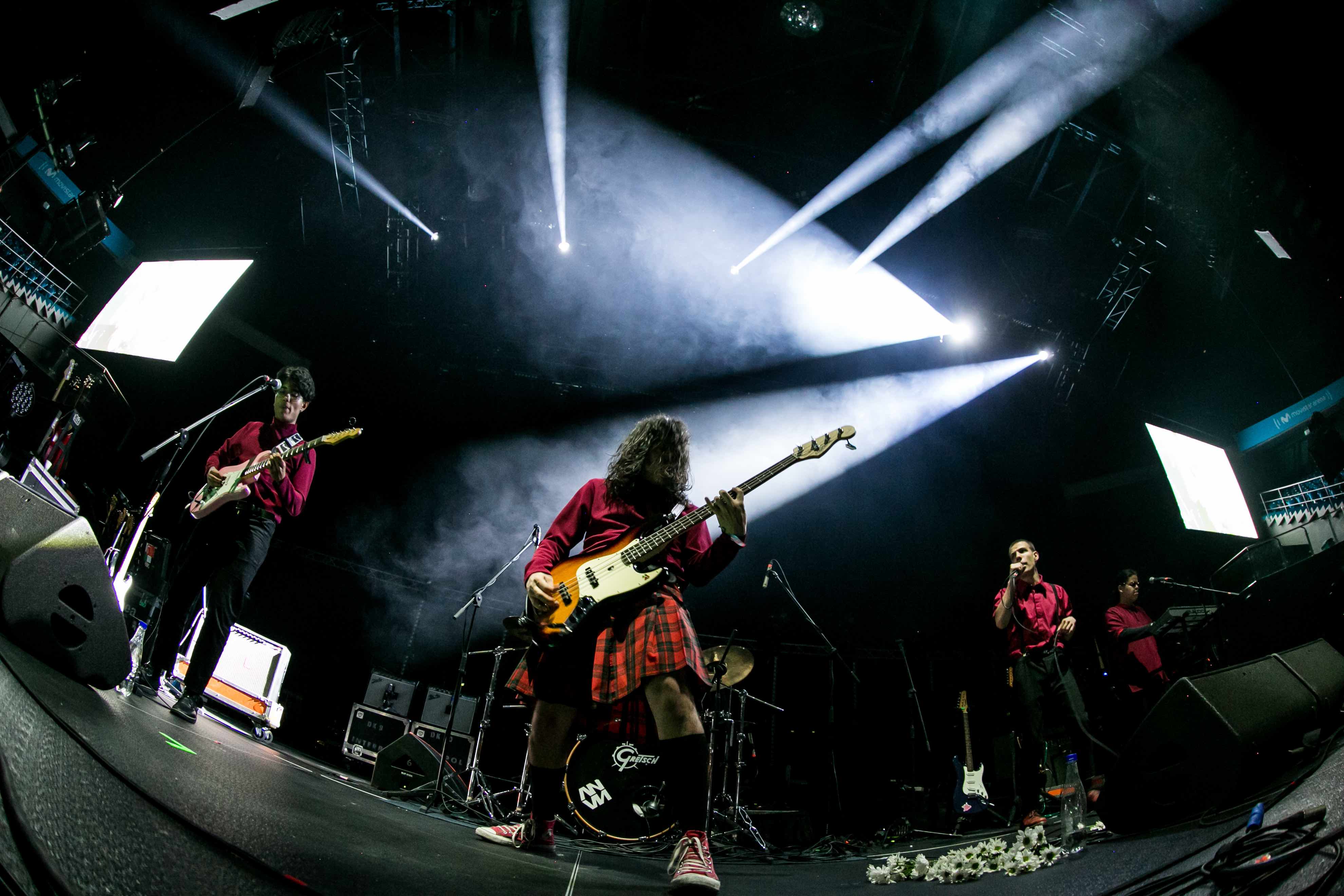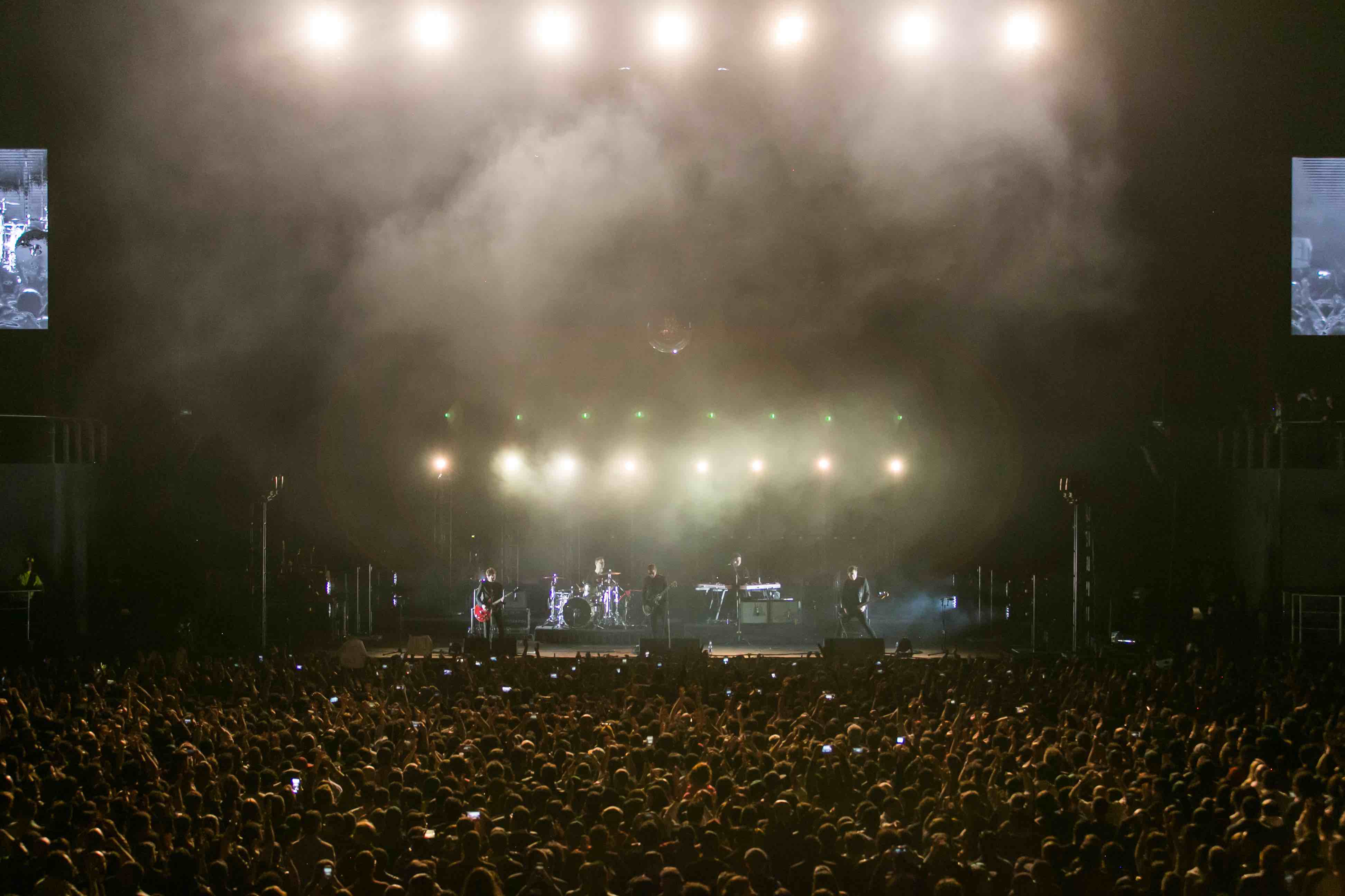 Yo estaba decidida a no dejarme ahuyentar y llegar temprano a ver a Margarita Siempre Viva, banda de Medellín encargada de comenzar esta gran noche. A las 7:30 p.m. se apagaron las luces del Movistar Arena, que no estaba aun totalmente lleno pero sí contaba con algunos curiosos y otros escuchas que ya conocían a estos chicos. Los antioqueños nos llevaron a bordo de su viaje lleno de sonidos post punk e indies, por un momento nos sentimos recorriendo sus recuerdos, transitando sus canciones (ha sido una de las bandas teloneras que más tiempo le dan en tarima, de las que he visto este año).