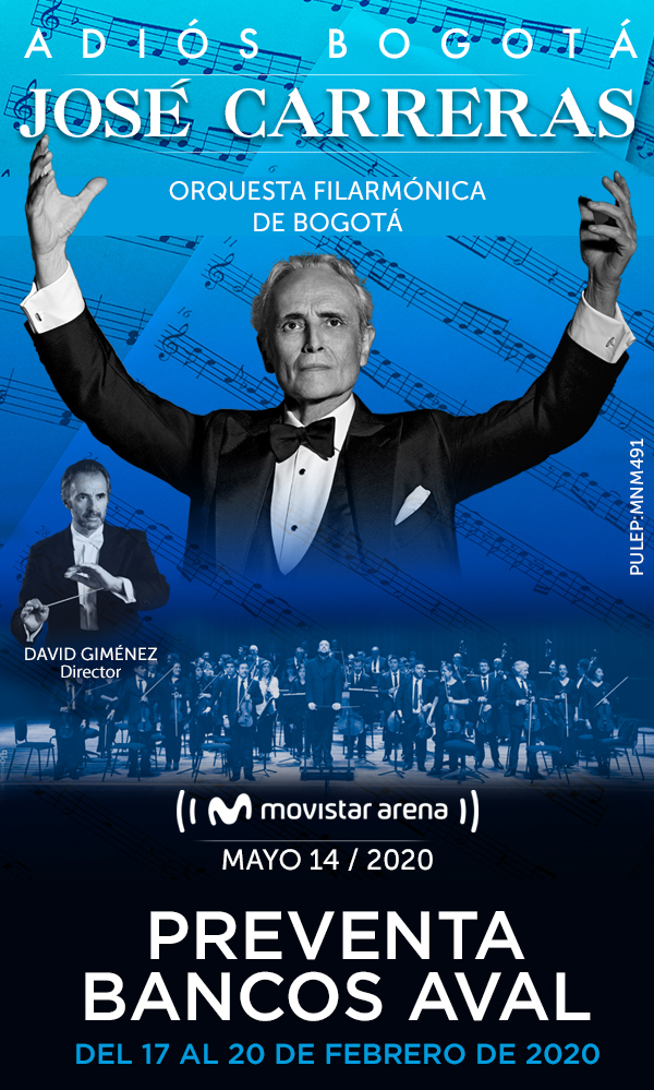 “Adiós Bogotá”, es el nombre de la presentación que realizará en Bogotá el tenor español José Carreras. Se trata de una única presentación que promete ser un recital irrepetible acompañado por la Orquesta Filarmónica de Bogotá, e irá desde lo clásico hasta la música popular. El Tenor planea presentar lo mejor de su calidad interpretativa en un selecto repertorio, prometiendo ser uno de los eventos más grandes del año. Entradas AQUÍ.