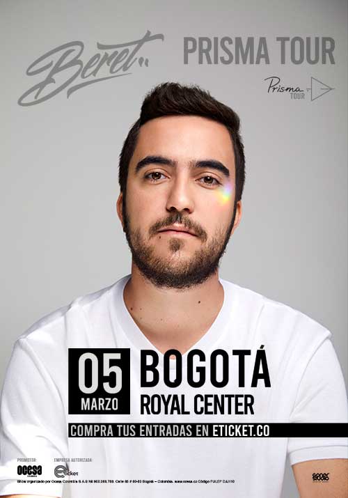 Después de su primer trabajo discográfico, Beret anuncia el comienzo de su gira ´Prisma Tour`. El cantante iniciará su gira por varias ciudades de España para luego aterrizar en Latinoamérica para dar un gran show en Bogotá. El artista revelación llegó a Latinoamérica gracias a su talento y colaboración con el cantante colombiano Sebastián Yatra con la canción ´Vuelve` que hace parte de su nuevo álbum. Entradas AQUÍ.