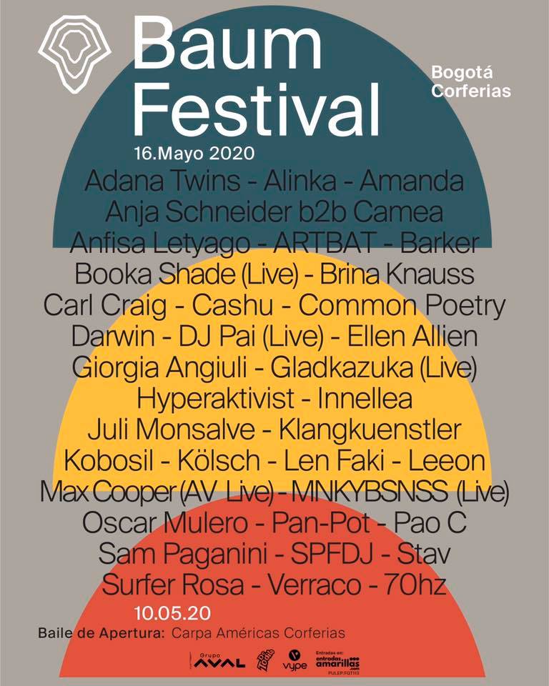 El Baum Festival 2020 presenta un diverso cartel con más de 35 actos, entre los más destacados están: Len Faki, el equivalente máximo de techno potente a gran escala; PAN-POT, el épico dúo alemán; el regreso a Baum Festival de la madrina del techno contemporáneo, Ellen Allien; Carl Craig, con sus más de tres décadas de oro sólido; el techno español brillará con Oscar Mulero; y el italiano Sam Paganini. Entradas AQUÍ.
