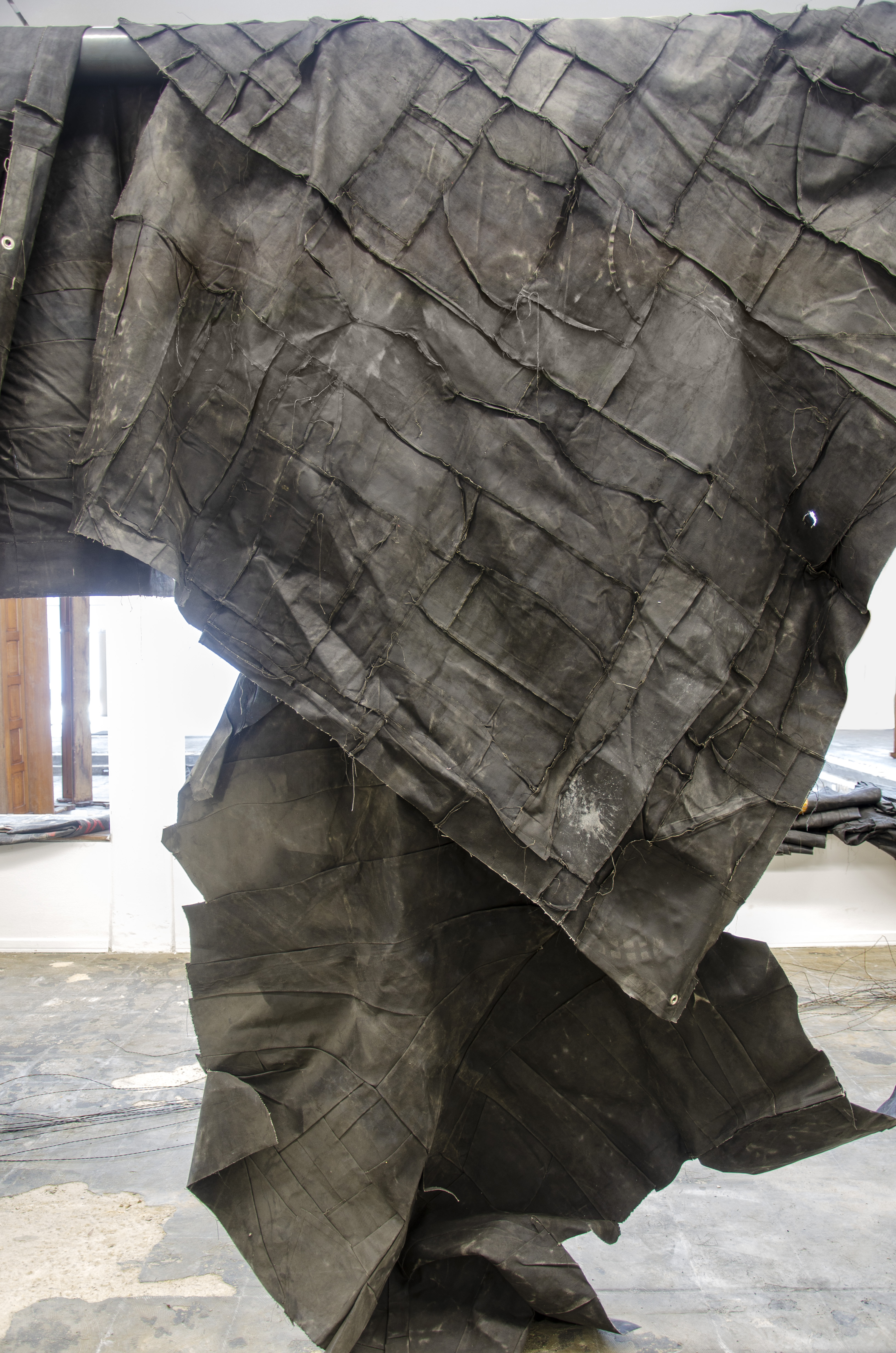Las telas negras han sido desde su origen el núcleo de esta nueva exhibición. Son grandes lienzos pintados por ambos lados con óleo color negro marfil y cuya pintura se fijó a través del calor de planchas que dejaron huellas, marcas, texturas. Las telas, que hoy se han multiplicado y cuyas cicatrices se han atenuado según el bagaje recorrido y la historia desarrollada, se reúnen en su mayoría en la Sala Principal, donde confluyen con tripas rellenas de camisetas populares utilizadas por la clase obrera, igualmente rellenas de algodón. Las tripas representan a troncos humanos y a sus estómagos; estómagos que chupan, roban, escupen, y de donde también se expulsan rocas de maíz y arcilla que fueron quemadas en hornos industriales.