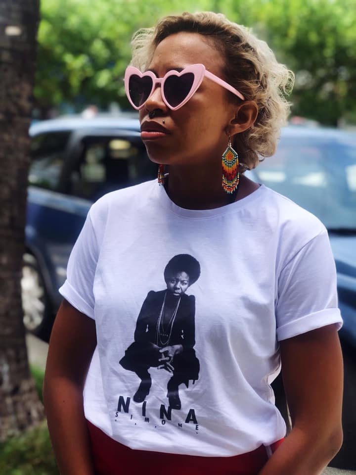 Así, sobre una camiseta negra se puede leer “Mi cabello no necesita tu aprobación”, “Black Power” o “Cero discriminación”. Siguiendo esta línea, otras prendas tienen imágenes de figuras afro importantes como Lauryn Hill, Angela Davis, Benkos Biohó, Martin Luther King, Malcolm X y Mohammed Ali. “Ali es el que más me gusta porque era un atleta de talla mundial, y cuando estaba en su mejor momento, se volvió activista”, dice.
