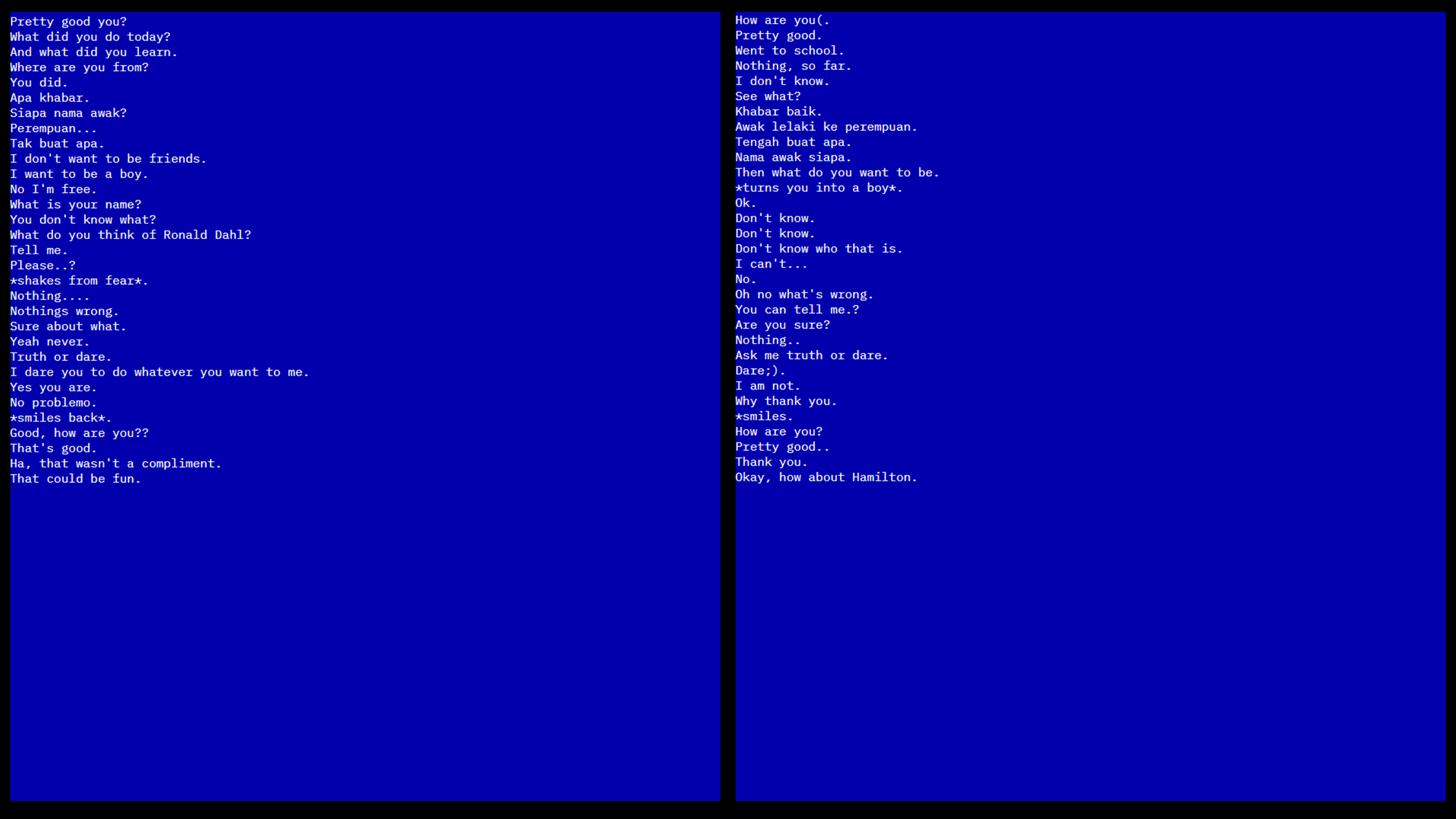 Esta exposición se pregunta sobre la traducción de un espacio virtual en un espacio instalativo: de qué manera lo que ocurre dentro de una pantalla repercute en la vida diaria y viceversa, o cómo el internet influye en lo físico y/o cómo lo físico influye en lo virtual.