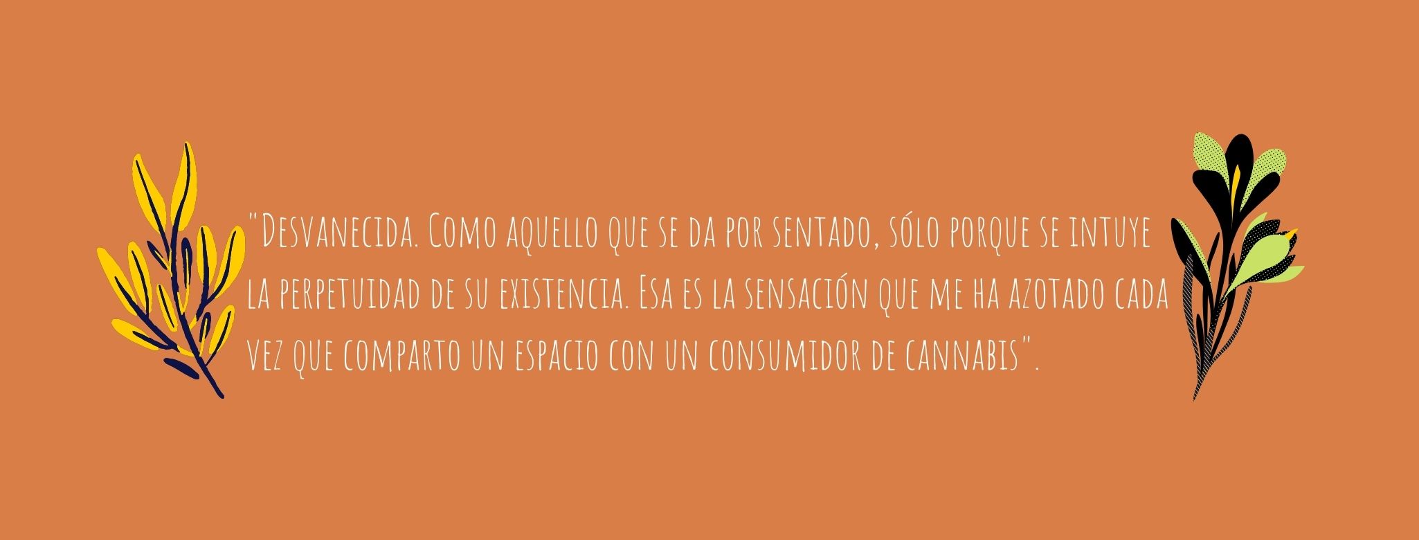 Desvanecida. Como aquello que se da por sentado, sólo porque se intuye la perpetuidad de su existencia. Esa es la sensación que me ha azotado cada vez que comparto un espacio con un consumidor de cannabis. Cuando me observan, me encuentro con una mirada vacía y un cuerpo que, al alcanzar la velocidad crucero, se desconecta de todo aquello que no haga placentero su trance.