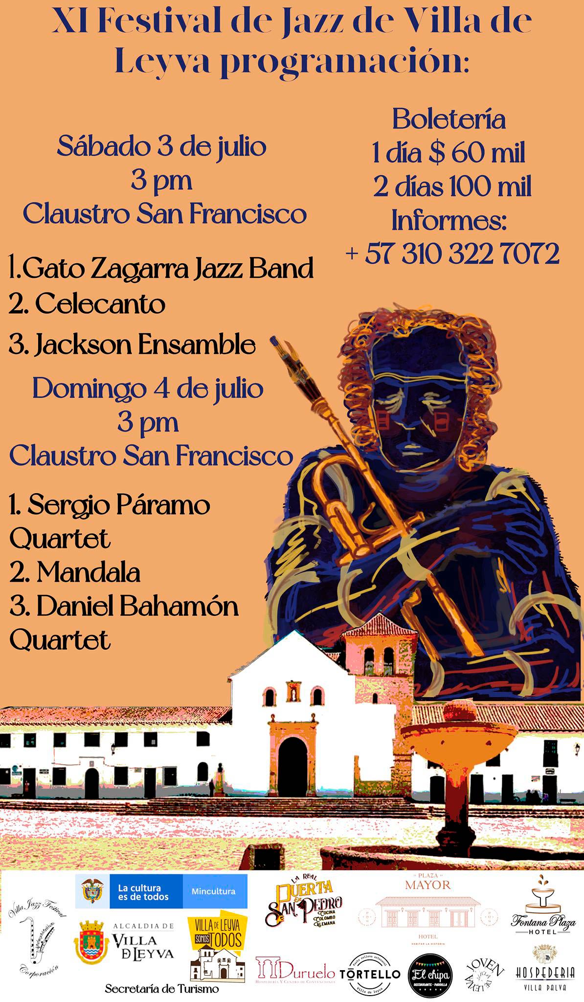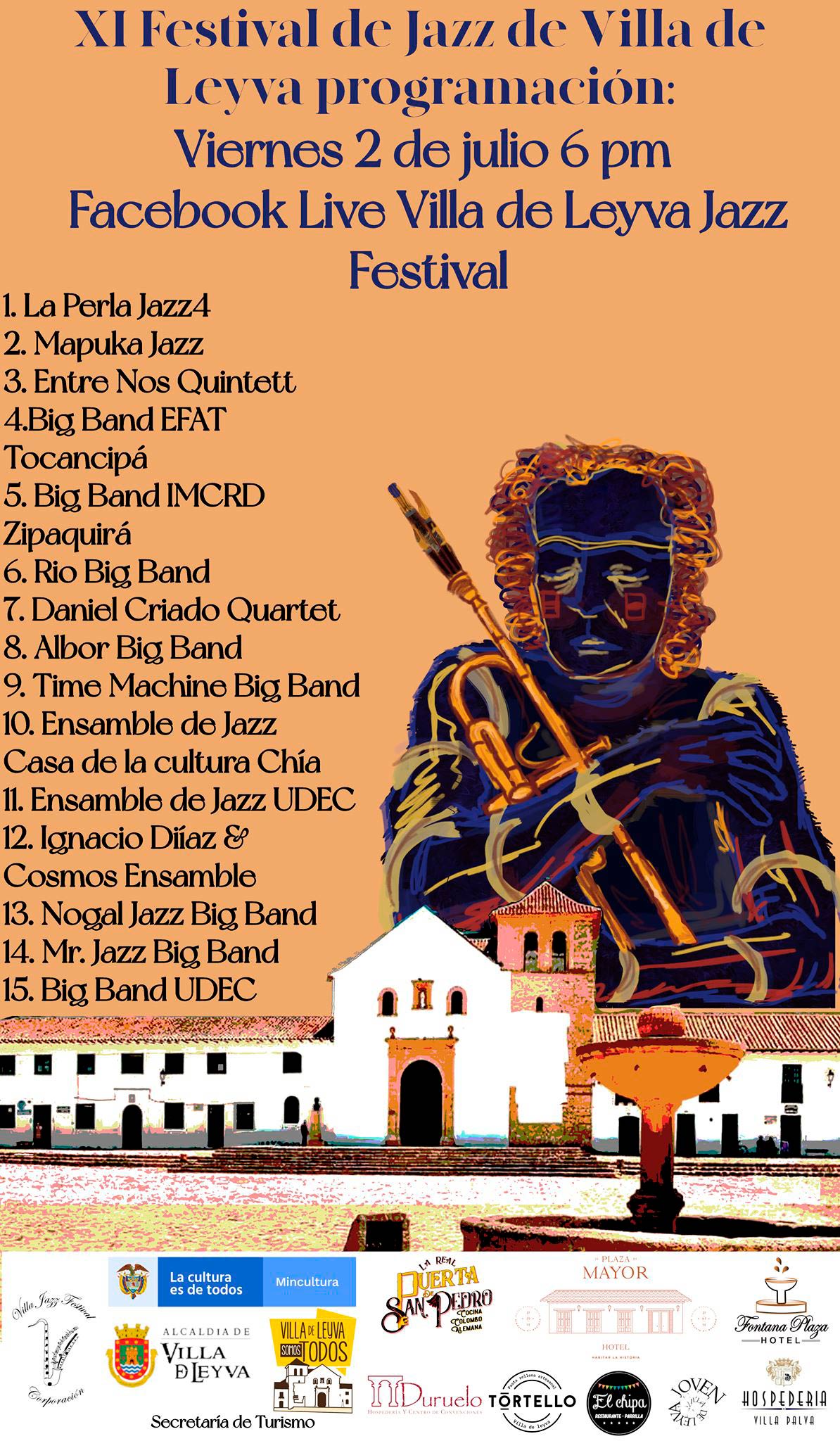 La undécima versión del Festival Internacional de Jazz de Villa de Leyva 2021, se llevará a cabo de forma virtual el día 2 de julio a partir de las 6:00 p.m. y presencial los días 3 y 4 de Julio desde las 3:00 p.m.