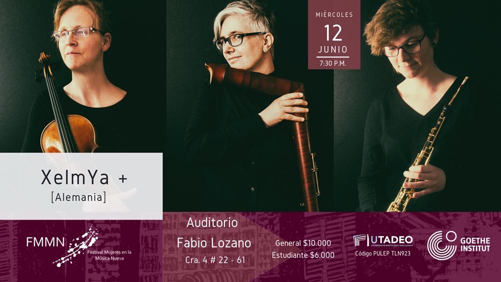 - Concierto del trío, XelmYa+[Freddi Börnchen – oboe / corno inglés, Alexa Renger – violín, Sylvia Hinz – flauta dulce], que traen un concierto que incluye música de Melissa Vargas (Colombia), Olga Victorova (Ucrania), Anna Arkushyna (Ucrania), Ailis Ni Riain (Irlanda), Charlotte Seither (Alemania), Violeta Dinescu (Rumania), Jeanne Strieder (Alemania), Hilda Paredes (México), Lotta Börnchen (Alemania) y Chikage Imai (Japón).