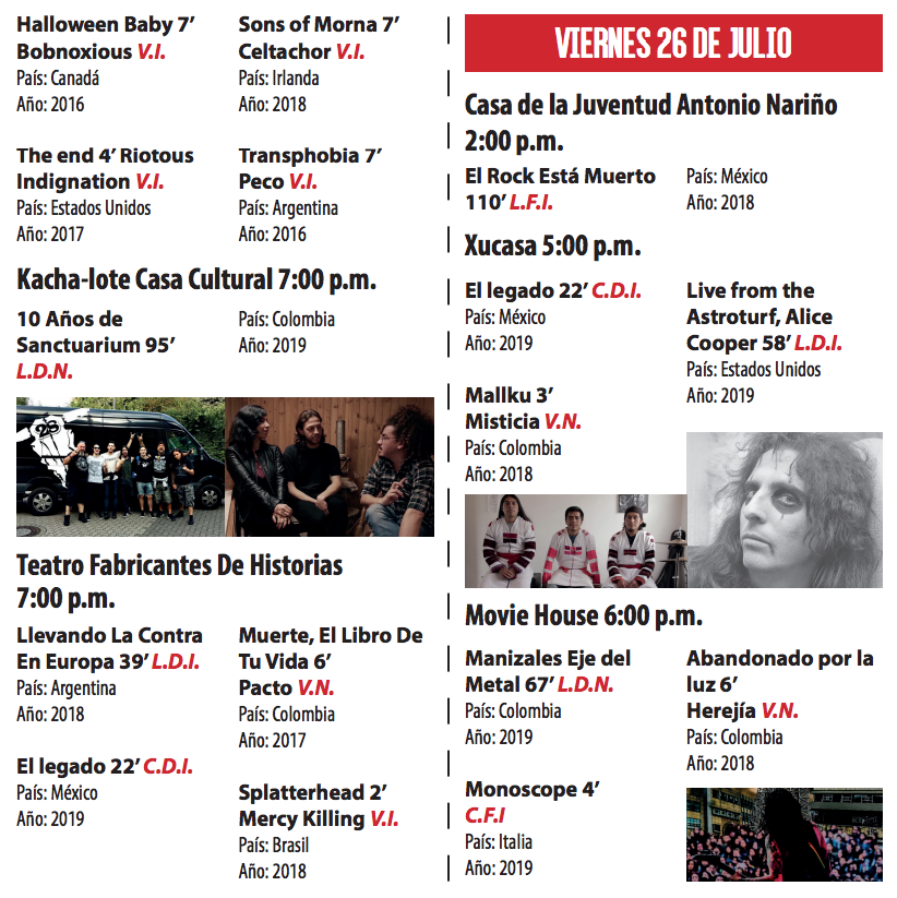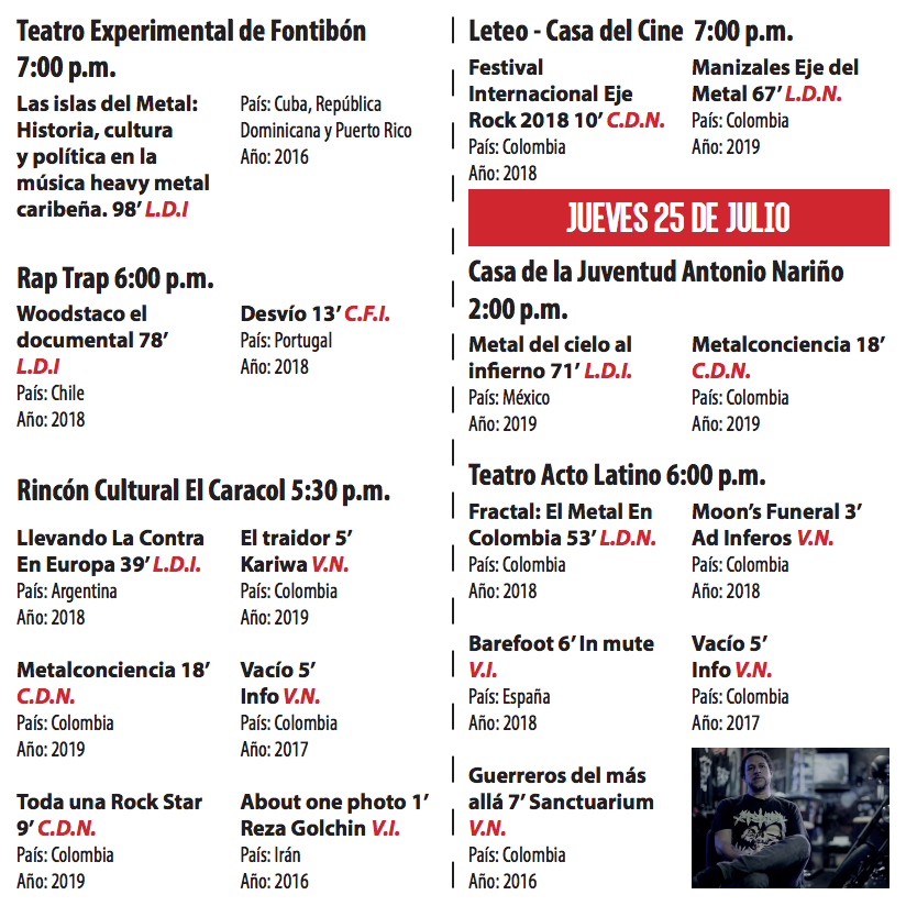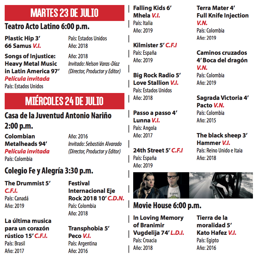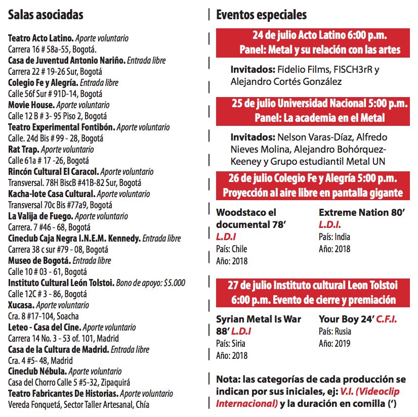 El Festival Internacional de Cine y Metal, en su primera edición, que se llevará a cabo del 23 al 27 de julio en Bogotá, Madrid, Soacha, Zipaquirá y Chía, ya tiene su selección oficial. Fractal, de Canal Trece, hará parte de las proyecciones del evento.