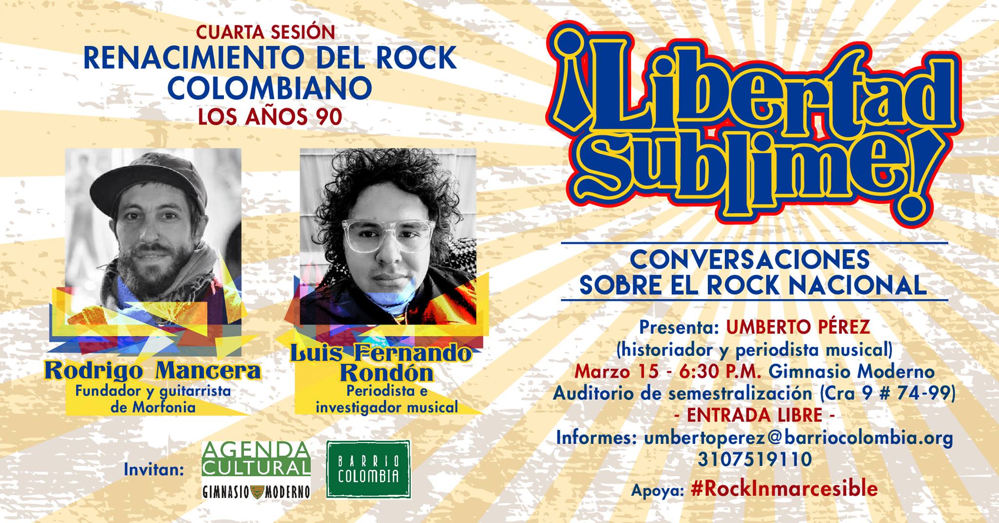 Este jueves 15 de marzo sucederán, de manera simultánea y en dos lugares distantes de la misma Bogotá, dos eventos acerca de un tema que le roba el sueño a un puñado de investigadores, periodistas, melómanos y otros entusiastas de la música desde hace un tiempo: los fragmentos de un rompecabezas llamado rock colombiano. Mientras en el Auditorio de Semestralización del Gimnasio Moderno tendrá lugar la cuarta sesión del ciclo de charlas '¡Libertad sublime! Conversaciones sobre el rock nacional', organizado por Umberto Pérez, en la Biblioteca Nacional sucederá la primera sesión del 'Seminario sobre historia del rock colombiano', basado en libro 'La causa nacional. Historias del rock en Colombia' de Jacobo Celnik. La coincidencia de estos dos eventos el mismo día y a la misma hora (ambos con entrada libre) nos lleva a pensar que se viven días provechosos para la memoria de uno de los capítulos más apasionantes y desconocidos de la música colombiana.