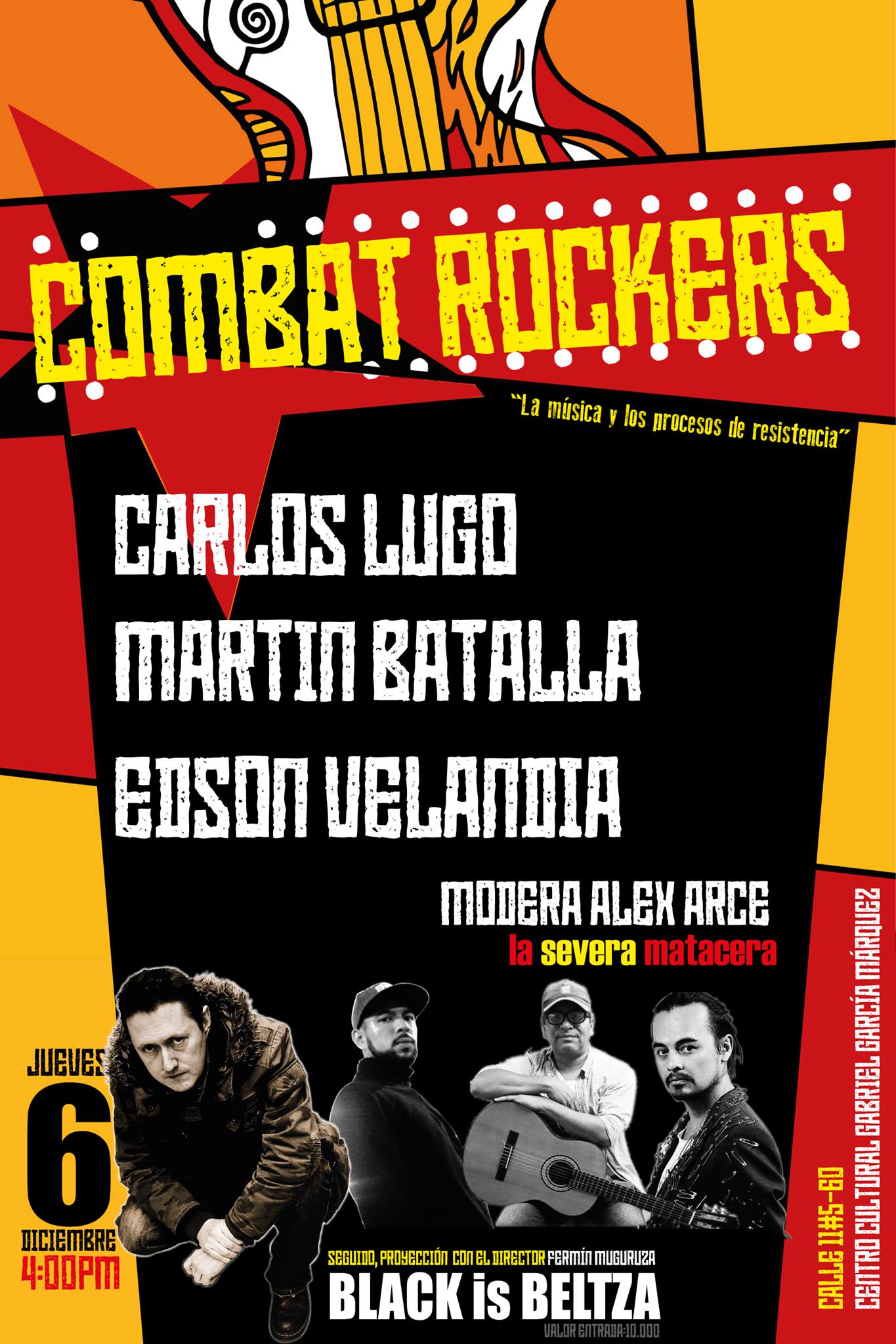 'Combat Rockers' también hace parte de este componente. Un conversatorio en el que se reunirán músicos para compartir sus experiencias y reflexiones en torno a la música como proceso de resistencia.
