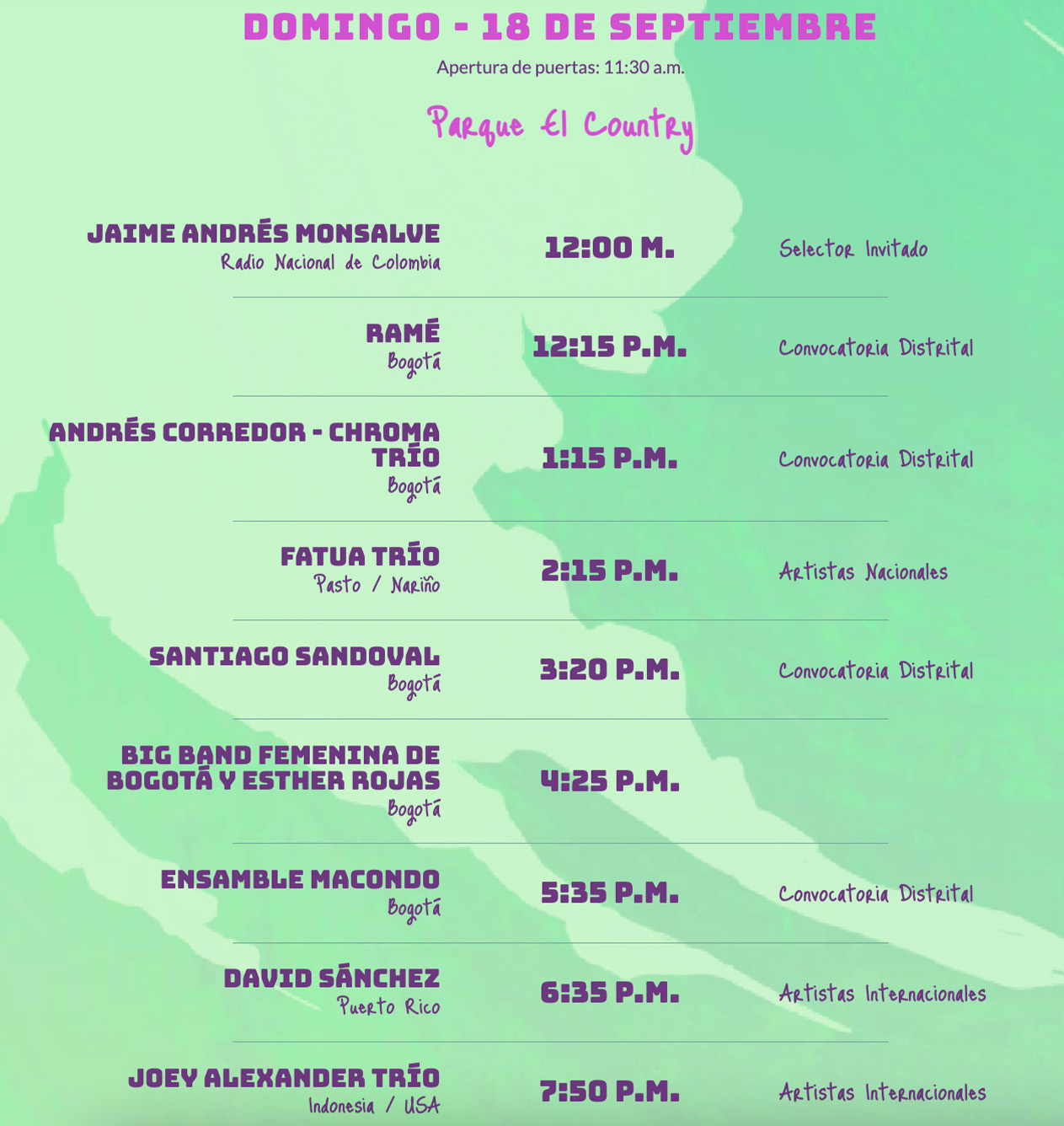 También, en el mes de mayo se dieron a conocer los nombres de los siete grupos bogotanos escogidos a través del Portafolio Distrital de Estímulos – PDE, que obtuvieron los mejores puntajes a lo largo del proceso de selección. Se trata de Andrés Corredor Chroma Trío, El Tote, Ensamble Macondo, Last Dreamers, Ramé, Santiago Sandoval y Sergio Páramo Quartet, artistas que ofrecen un amplio abanico de sonidos, mezclas yå contrastes que ponen a dialogar a Colombia con el mundo a través de la música.