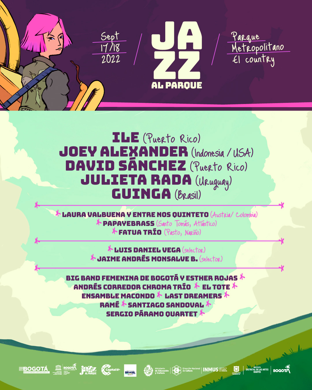 Con Guinga de Brasil, Fatua Trío de Pasto, Papayebrass de Santo Tomás (Atlántico) y las agrupaciones bogotanas ganadoras de la convocatoria del Portafolio Distrital de Estímulos, se completa el cartel musical de Jazz al Parque 2022, que se llevará a cabo el 17 y 18 de septiembre en el Parque El Country de Bogotá.