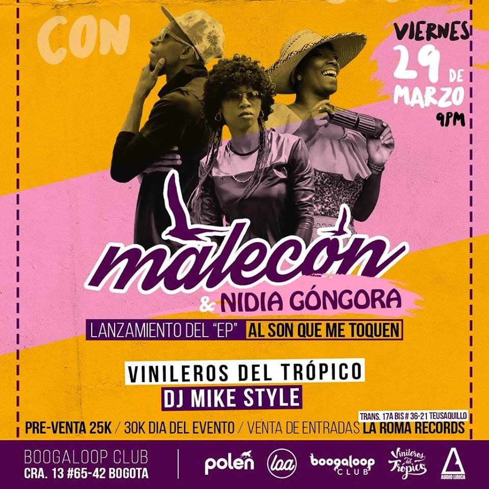 Esta noche, 29 de marzo, en la tarima de Boogaloop Club en Chapinero, Malecón (La Ruka y Flaco Flow) lanzarán su nuevo trabajo musical, y a esta cita se sumará Nidia Góngora para interpretar 'Todo con coco', uno de los temas del reciente EP de Malecón.
