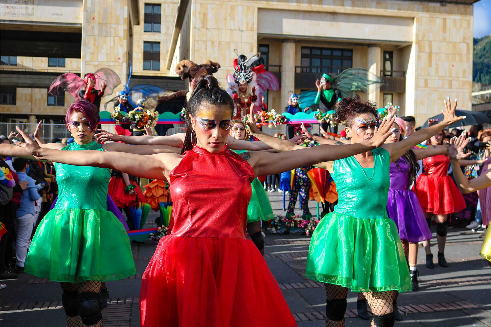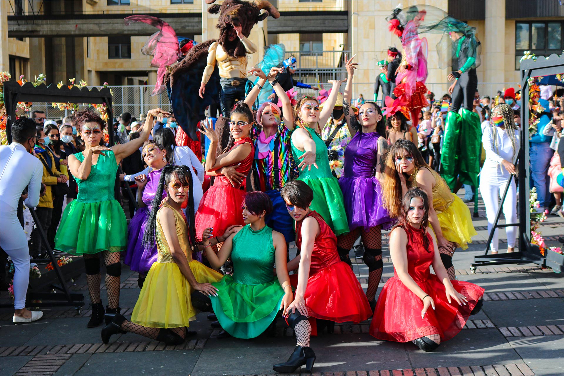 Los capitalinos pudieron disfrutar de una tarde soleada, y de la comparsa “El arcoíris de la diversidad” de la Asociación Cultural Candela Teatro con 44 artistas en escena y el apoyo de Idartes.