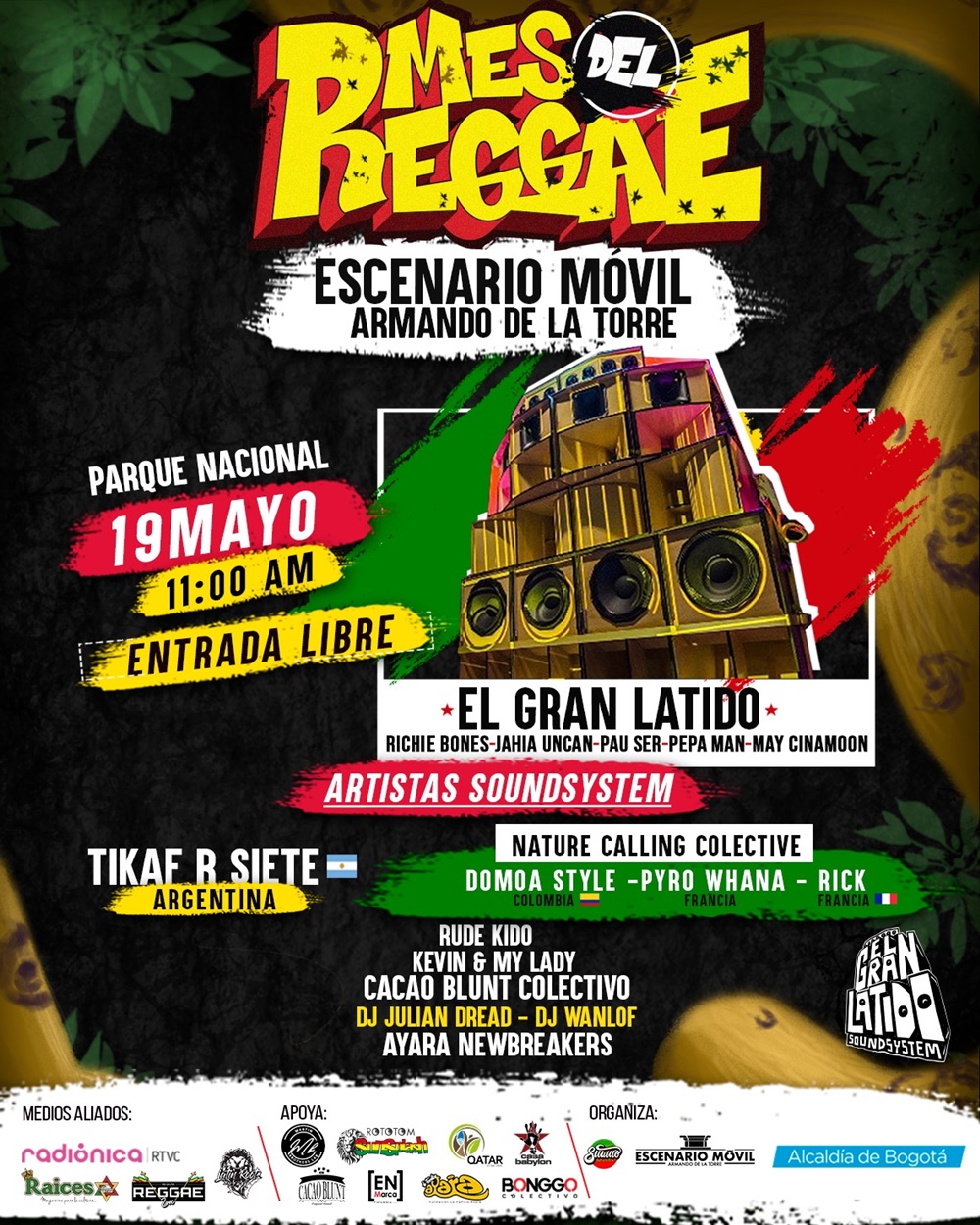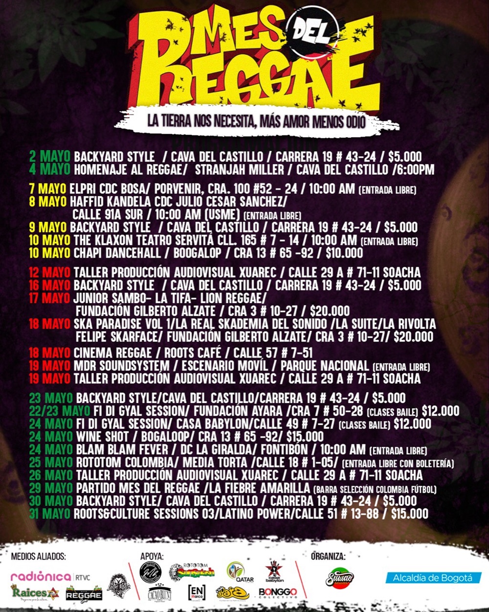 Mayo es el mes del reggae en Bogotá, un viaje diario a través de la cultura que este género musical encierra en sus letras; su carácter social, su búsqueda y su preocupación por los temas de paz que ha sido la bandera que han llevado todos sus seguidores.
