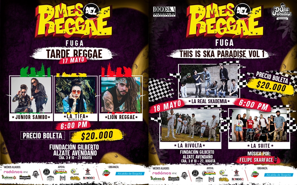La Fundación Gilberto Alzate Avendaño también tendrá dos fechas con artistas nacionales los días 17 de mayo en la 'Tarde de reggae' y el 18 de mayo en 'Ska paradise vol 1'.