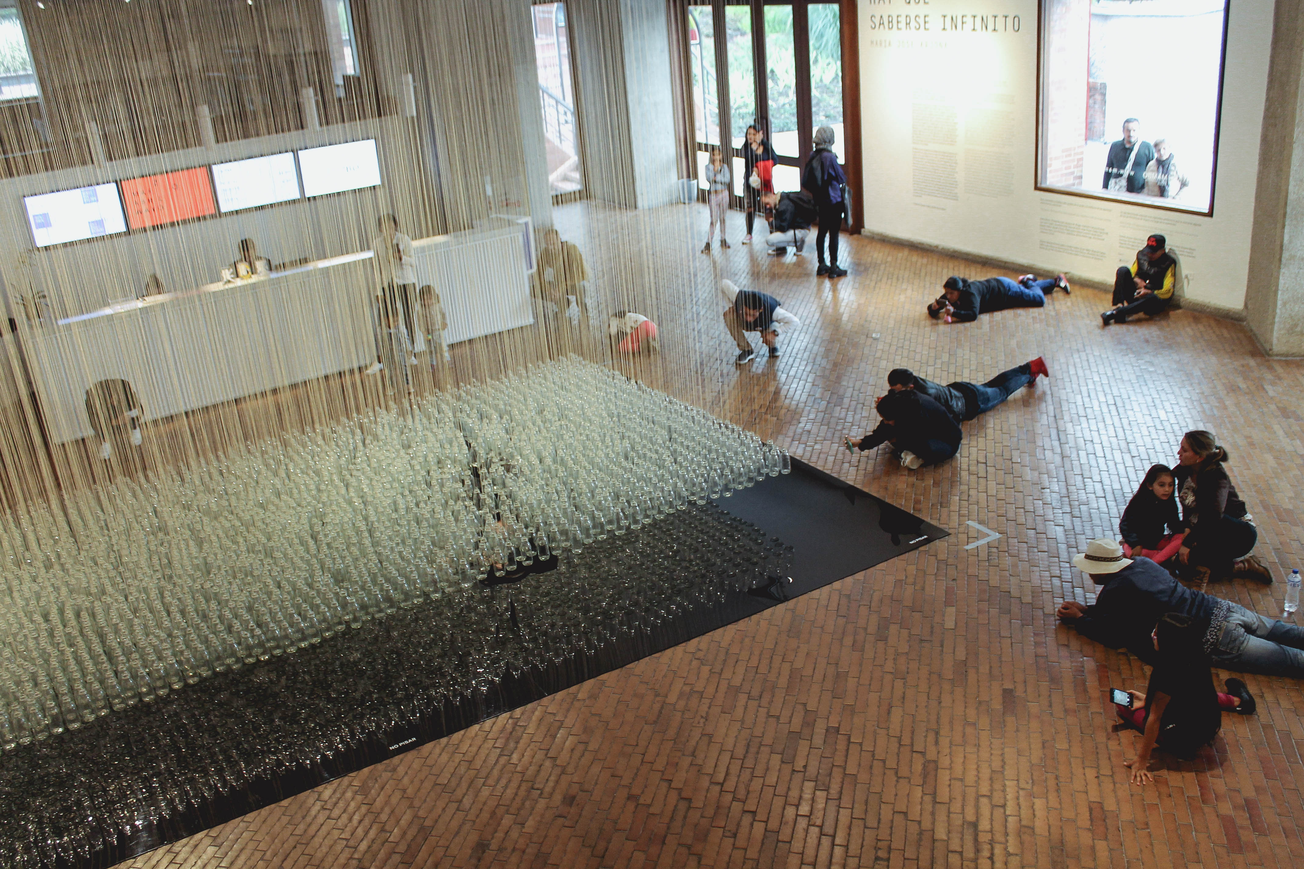 El domingo pasado visité el Museo de Arte Moderno de Bogotá – MAMBO. La visita fue motivada por varias razones: la primera, este espacio se ha revitalizado y parece estar renaciendo después de algunos años en un estado profundo de somnolencia. Su nueva directora (anterior directora de la Galería NC-Arte) Claudia Hakim, nos ha sorprendido al lograr poner el museo sobre la palestra nuevamente. Segundo, la curiosidad que me causó el sonido producido por unas botellas en las redes sociales de quienes sigo. Tercero, desde que hicimos el documental ‘Bogotá semana del arte’ no había vuelto al ejercicio de la observación y disfrute de las artes.