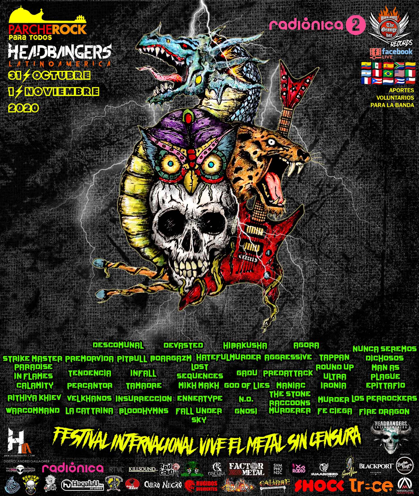 El Festival Parche Rock 3, Vive El Metal Sin Censura se llevará a cabo el 31 de octubre y 1 de noviembre del 2020. Por Colombia se presentarán Gnosi (Medellín), God of Lies (Medellín), Insurreccción (Pasto), Pitbull (Bogotá), Sagros (Cali), Tappan (Bogotá), Aggressive (Pereira) y Warcommand (Bogotá).
