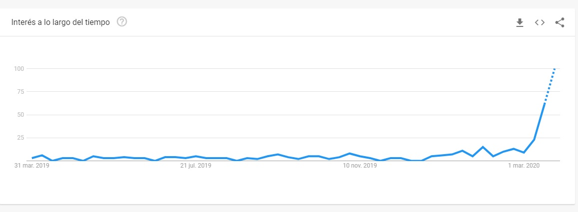 Este consumo elevado de series, películas, documentales y programas en este momento tan particular, también lo corroboran las tendencias de Google, donde las búsquedas relacionadas con “películas de virus” se han disparado en Colombia durante el último mes. La tendencia también se repite en Estados Unidos.