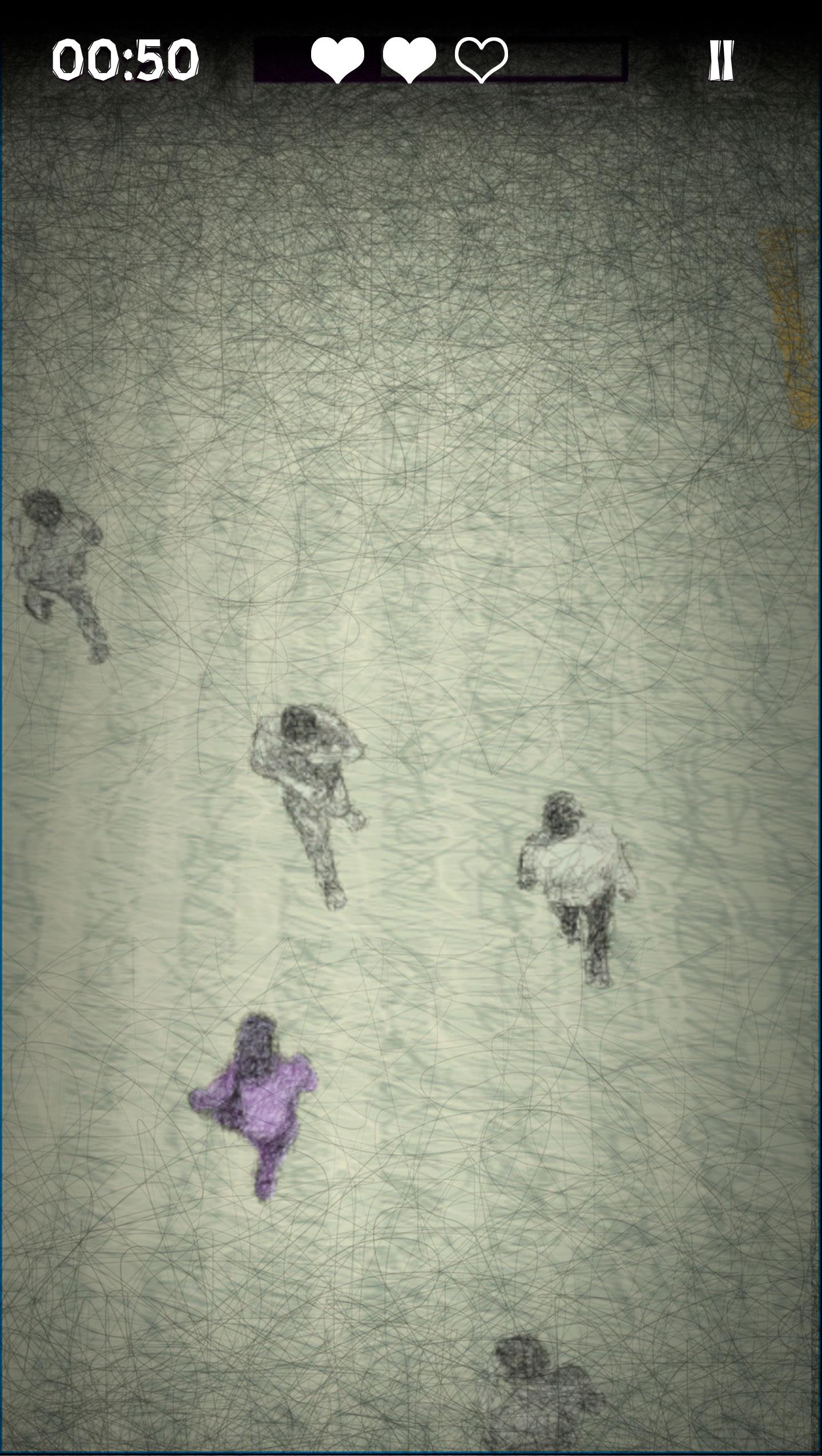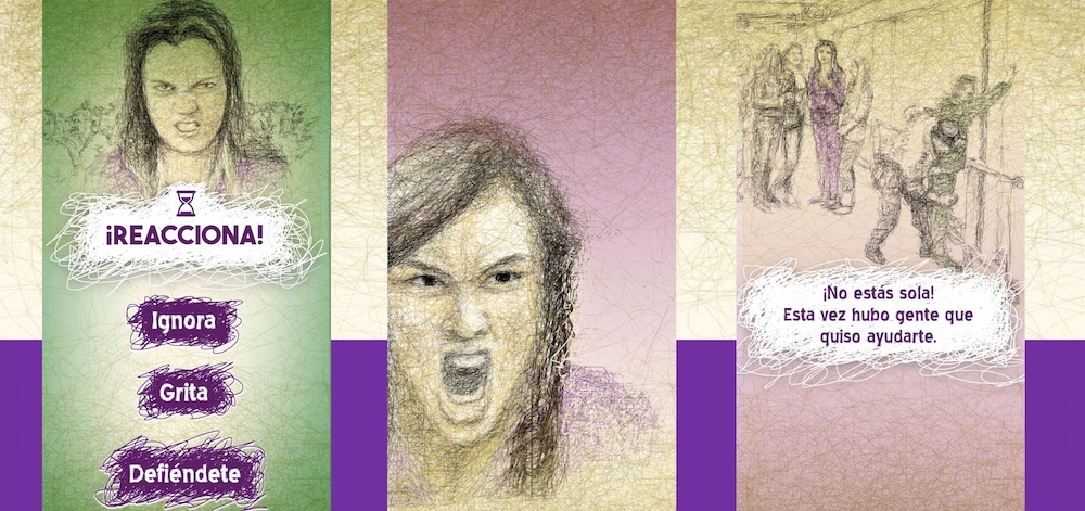 El asunto es que identificar a estos personajes no será nada fácil. Cada vez que Violeta sea acosada, nuestro teléfono vibrará, y la pantalla se tornará de color verde. Una imagen nos mostrará el tipo de acoso que ella está enfrentando: puede ser físico (manoseo), sonoro o verbal (piropos desagradables) o visual (miradas morbosas).