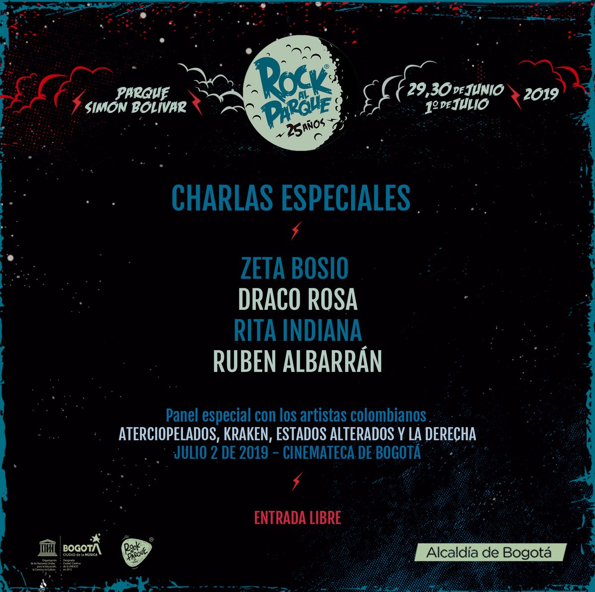 El próximo 2 de julio en la Cinemateca de Bogotá se realizarán 4 charlas con Zeta Bosio, Draco Rosa, Rita Indiana, Rubén Albarrán y un panel especial con los artistas colombianos Aterciopelados, Kraken, Estados Alterardos y La Derecha. Serán de entrada libre.