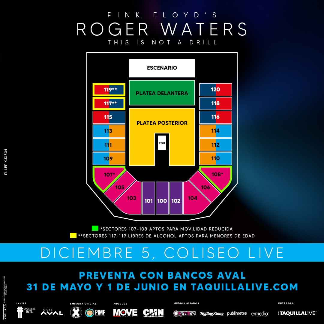 Se anuncia el concierto de Roger Waters "This Is Not A Drill" en el Coliseo Live de Bogotá (Calle 80 KM 1,5 vía Cota), el martes 5 de diciembre de 2023. Este hace parte de su gira de despedida por todo Suramérica.
