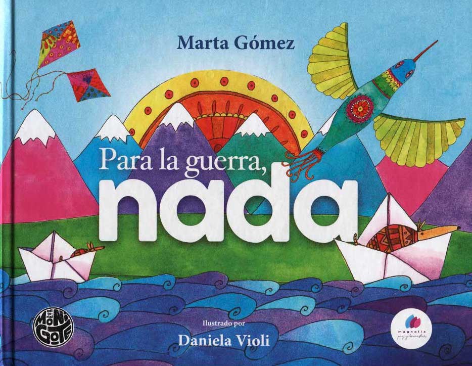 Escrito por la cantante caleña Marta Gómez e ilustrado por la artista barranquillera Daniela Violi, este libro —a la vez colorido y conmovedor— surgió como una adaptación de la popular canción “Para la guerra, nada”, que Marta compuso en 2014 y que, desde entonces, se ancló en la memoria emotiva y sonora del país (y del mundo hispano) como uno de los himnos de paz más contundentes de la década: “Para el silencio, una palabra / Para la oreja, un caracol / Un columpio para la infancia / Y al oído, un acordeón / Para la guerra, nada”. Coeditado entre la Editorial Monigote y La Fundación Magnolia para La Paz y el Bienestar, esta versión libro de Para la guerra, nada busca, en palabras de sus editores, llevar el mensaje de paz y esperanza de la canción a nuevos destinos y personas, especialmente a aquellas que han sido afectadas por cualquier forma de violencia, ahora en formato impreso.