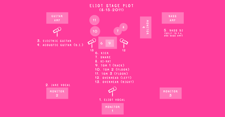 - Evalúa si alguna situación no amerita el hacer un stage plot. Por ejemplo, si vas a tocar solo con un micrófono, tu guitarra y un amplificador.