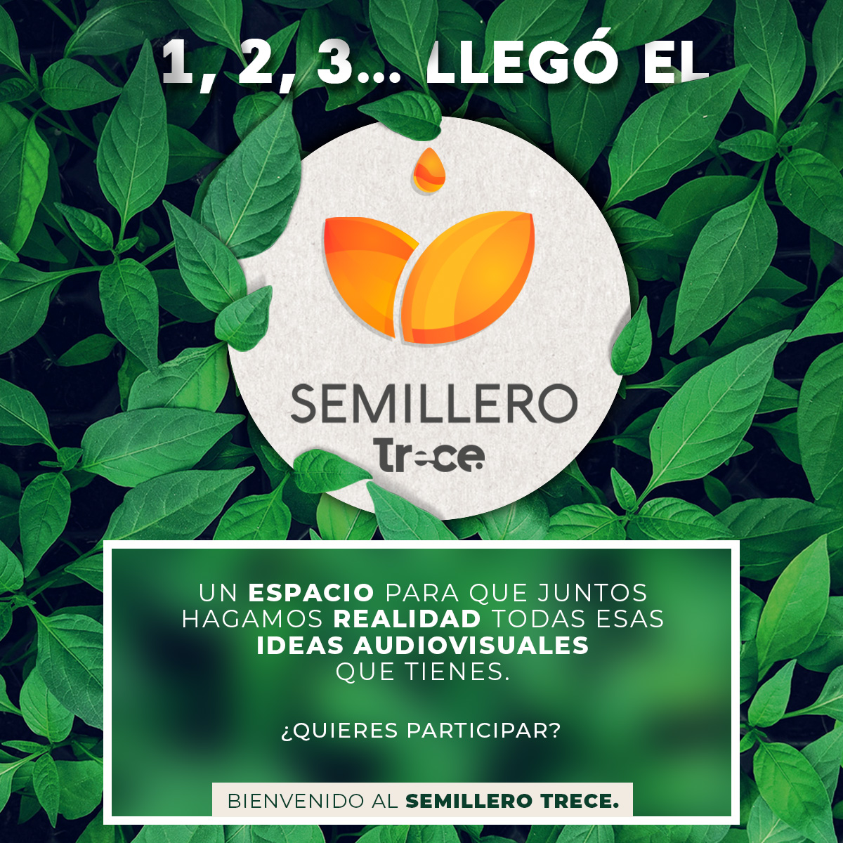 Hoy abrimos este Semillero Trece para que, a través de nuestra página web, nos hagas llegar tus proyectos y podamos trabajar de la mano en su desarrollo.